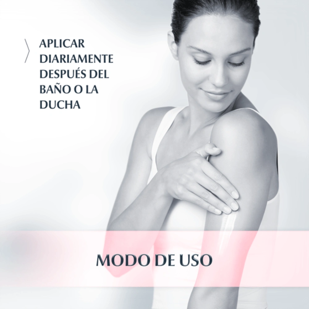 Aplícala a diario (o con más frecuencia ,si es necesario) tras la ducha o el baño. Masajea con suavidad hasta su completa absorción. |